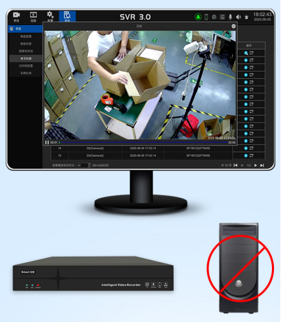 产品安装简便,无需电脑主机,即插即用,大大节省了成本和时间。通过扫码枪扫描条形码,系统自动录入单号,输入单号后五位即可查询回放,条形码单号可叠加在所有带接收器的通道视频上,实现多视角同步录像,极大提升了货物管理的便捷性与效率,让货物溯源更加精准。配合一键扫码锁住人·货·责证据链,叠加APP免费远程对讲、人车宠物AI侦测及随时调取录像的智能操作,形成从安装部署到证据留存、远程协同、智能识别、快速回溯的全链路闭环,真正实现“即插即用省成本、扫码即查溯源头、多视角同步保真实、远程对讲无障碍、AI侦测全覆盖”的立体化货物管理解决方案,让操作更简单、溯源更精准、管理更高效。